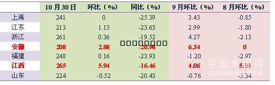8月為華東全年行情的轉(zhuǎn)折點,8月華東總體行情出現(xiàn)積極變化。9月華東市場出現(xiàn)一波上揚行情其主要動能來自“實力+努力+風口”。進入10月份華東市場需求“風力”并不大,已經(jīng)“起飛”的水泥價格也存較大下墜風險,企業(yè)勉力保之,以求增加全年業(yè)績光彩。