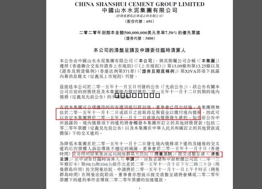 山水水泥是我國第七大水泥企業(yè), 2008年在香港上市,也是中國首家在香港紅籌股上市的水泥企業(yè)。該公司目前的水泥產(chǎn)能約1億噸,是長江以北最大的水泥集團(tuán)。公司突然因債務(wù)違約導(dǎo)致清盤讓人倍感疑惑。