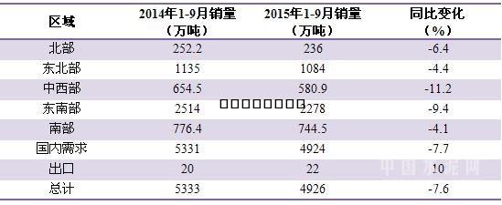 從11月底巴西水泥生產商陸續(xù)發(fā)布的三季度財報來看,其業(yè)績并不理想。當地建筑市場的低迷,導致水泥銷量也大幅下滑。這歸咎于房地產融資縮減30%以及基建工程減少20%。 Votorantim 2015年前9個月水泥銷量同比下滑4%降至2670萬噸。InterCement 水泥及熟料銷量亦同比減產7.2%,降至2110萬噸。拉法基(256.25元/噸,0%)豪瑞在其大失所望的三季度財報中并未明確指出下滑量。 總體而言,據巴西水泥工業(yè)協會(SNIC)稱,前三季度全國水泥銷量為4920萬噸,同比下降7.6%。部分地區(qū)跌幅更大,如中西部地區(qū)銷量跌幅達11.2%,僅為580.9萬噸;東南部地區(qū)亦有9.4%的降幅,僅2278萬噸。東南部地區(qū)包括全國最大的水泥生產洲米納斯吉拉斯州(Minas Gerais),全州擁有水泥年產能2015萬噸。 表:巴西國內各區(qū)域2014年與2015年前三季度水泥銷量對比