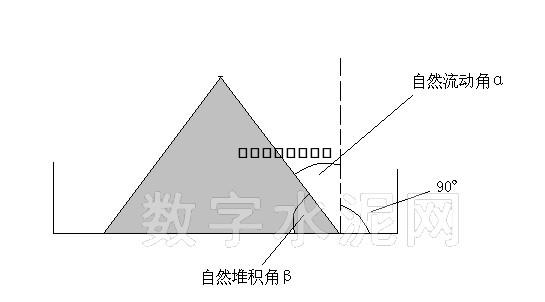 其中: α--自然流動(dòng)角 β--自然堆積角 為了量化粉體的流動(dòng)性,本文建立以粉體自然堆積角為標(biāo)準(zhǔn)的6級(jí)數(shù)學(xué)分度定義: 1、級(jí)別0----飽和密度固態(tài),含氣量已到達(dá)下極限含量,稱鐵實(shí)料,自然堆積角最高。一般在料壓超過(guò)飽和壓力(不同粉體的飽和壓力不同,往往表現(xiàn)為不同的料位高度)后經(jīng)長(zhǎng)時(shí)靜態(tài)沉積將料隙中空氣向上全部逸出后形成。例如礦粉:α≈25,β≈65,自重下移時(shí)必須從其下落方向前及其邊側(cè)撤除全部支撐與阻擋后才可行。 2、級(jí)別1----高密度固態(tài),含氣量到達(dá)較小含量,稱硬實(shí)料,自然堆積角次高。一般靜態(tài)高壓沉積數(shù)十小時(shí)后就會(huì)逐漸逸出所含氣體降為0級(jí)流動(dòng)性。例如礦粉:α≈35,β≈55,自重下移時(shí)必須從其下落方向前撤除正面支撐后才可行。 3、級(jí)別2----中密度固態(tài),含氣量到達(dá)中低等含量,稱中硬料,自然堆積角中等。一般靜態(tài)高壓沉積數(shù)小時(shí)后就會(huì)逐漸逸出部分氣體降為1級(jí)流動(dòng)性。例如礦粉:α≈50,β≈40,自重下移時(shí)只須從下落方向側(cè)前方撤除部分阻擋后就可向其饒行。