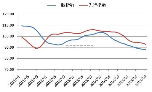 2014年,國內(nèi)水泥表觀消費量為24.86億元,占全球消費總量的比重已由2008年的50.57%提高至59.48%,然而消費增速卻創(chuàng)1991年以來新低,僅2.37%,2015年前三季度水泥消費量更是大幅下滑5.37%,受房地產(chǎn)投資減速拖累,國內(nèi)產(chǎn)能過剩形勢更趨嚴峻。盡管國內(nèi)城鎮(zhèn)化仍有巨大發(fā)展空間,然而經(jīng)濟的高速增長期已經(jīng)過去,中國經(jīng)濟步入結(jié)構(gòu)調(diào)整、轉(zhuǎn)型升級的“新常態(tài)”期,未來的水泥需求增長空間將變得有限。與國內(nèi)相比,放眼海外,我們預(yù)計,未來五年,海外水泥市場將至少有6.7億噸的增長空間。 國內(nèi)消費峰值近在眼前 工信部和中國水泥網(wǎng)共同發(fā)布的中國水泥景氣先行指數(shù)在今年3~5月短暫維穩(wěn)后,于6月繼續(xù)步入加速跌勢,該指數(shù)一般領(lǐng)先于行業(yè)一致景氣度6~8個月,因此,筆者對行業(yè)明年的形勢表示不樂觀。未來水泥需求是否還有增長空間?筆者認為,國內(nèi)的水泥需求增長空間正變得越來越窄。 圖1:中國水泥行業(yè)景氣先行指數(shù)與一致指數(shù)走勢