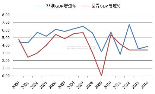 非洲有不容忽視的潛力 水泥消費與人口分布較為一致,2014年亞洲(除中國外)、非洲人口占海外總?cè)丝诘?0.8%和19.81%,而水泥消費量比重分別為49.98%和16.57%,非洲消費比重低于人口比重源于較低的人均水泥消費量,人均消費量估計在230公斤左右,北非以外的非洲國家人均產(chǎn)能甚至不足145公斤,人均水泥消費量更低。2014年,在世界經(jīng)濟總體放緩的背景下,非洲依然能保持良好的增長勢頭,基建及內(nèi)部需求支撐了經(jīng)濟的活力,加之較低的人均水泥消費水平表明非洲水泥市場有不容忽視的潛力。 圖4:非洲經(jīng)濟保持良好增長勢頭(%)