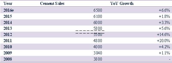 資料來(lái)源:Bisnis Indonesia 表2:2008~2016印尼水泥銷量