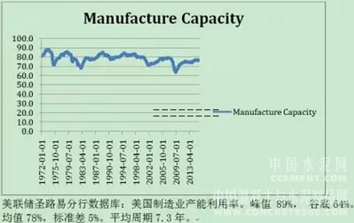 制造業(yè)的設(shè)備平均利用率比鋼鐵、汽車的狀況好一些,在64-89%之間擺動(dòng),平均周期為7年。