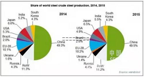 全球的鋼鐵產(chǎn)能情況如何呢?以下是國(guó)際鋼鐵協(xié)會(huì)2015年12月的最新數(shù)據(jù):全球粗鋼產(chǎn)量中,中國(guó)占比例為49.5%;全球鋼鐵企業(yè)的產(chǎn)能利用率都在下降,2015年均值為69.7%,中國(guó)2015年粗鋼的產(chǎn)能利用率為67%。