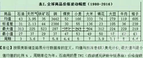 回顧歷史,過剩產(chǎn)能的產(chǎn)生,不完全是供給側(cè)的問題,更和宏觀經(jīng)濟(jì)的走勢(shì)有關(guān)。如果宏觀經(jīng)濟(jì)恢復(fù)增長(zhǎng),過剩產(chǎn)能很快消化不算,還會(huì)在產(chǎn)量、質(zhì)量?jī)煞矫娑忌闲屡_(tái)階。 如果宏觀經(jīng)濟(jì)失策,再優(yōu)秀的企業(yè)也會(huì)出現(xiàn)財(cái)務(wù)危機(jī)。美國(guó)三大汽車公司多次面臨破產(chǎn),全靠國(guó)會(huì)撥款救助,起死回生。所謂的“僵尸企業(yè)”,究竟是技術(shù)落伍的植物人,還是虎落平陽(yáng),必須由行業(yè)老將鑒定,不能讓沒有實(shí)業(yè)經(jīng)驗(yàn)的債主說(shuō)了算。 國(guó)際大宗商品的價(jià)格波動(dòng)幅度遠(yuǎn)超真實(shí)供求的變動(dòng) 按照西方的主流經(jīng)濟(jì)學(xué)教科書,價(jià)格機(jī)制應(yīng)當(dāng)保證市場(chǎng)的平穩(wěn)優(yōu)化運(yùn)作。如有偏離,在完全競(jìng)爭(zhēng)的市場(chǎng),也應(yīng)當(dāng)反映真實(shí)供求失衡的程度。 現(xiàn)實(shí)完全相反是,以美國(guó)主導(dǎo)的大宗商品國(guó)際市場(chǎng)價(jià)格的大幅波動(dòng),主要由投機(jī)性的壟斷競(jìng)爭(zhēng)驅(qū)動(dòng),不但對(duì)發(fā)展中國(guó)家造成嚴(yán)重沖擊,也導(dǎo)致西方發(fā)達(dá)國(guó)家產(chǎn)生持續(xù)的經(jīng)濟(jì)周期和不斷復(fù)發(fā)的金融危機(jī)。 我們先給大家看一組數(shù)據(jù),西方國(guó)際市場(chǎng)大宗商品的變化幅度和變化周期,見下表。