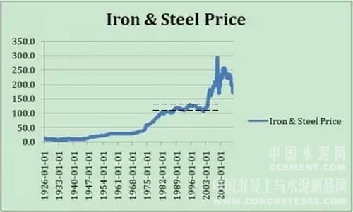 例如,鋼鐵制品的價(jià)格指數(shù),2002年1月為107.1,2008年8月漲到294.4,6年間,6年半漲了1.7倍; 金融危機(jī)爆發(fā)后的2009年5月,跌到169.2,9個(gè)月跌去43%。 危機(jī)過后鋼鐵價(jià)格依然大幅振蕩,2011年7月回升到256.9,14個(gè)月漲了52%,到2015年底又跌回171.0,4年下跌三分之一。鐵礦石2003年12月僅13.82,2008年12月升到69.89, 2011年2月繼續(xù)升到187.18,7年漲了12.5倍!然后一路下跌,到2015年12月只有39.60,4年跌去近80%。