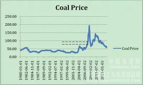 煤的價(jià)格,2005年11月為40.78, 2008年7月漲到192.86,不到3年漲了3.7倍!2009年3月跌到65.36,8個(gè)月跌去三分之二。2011年1月煤價(jià)回升到141.94,不到2年漲了1.2倍;到2015年10月又一路跌到56.05,4年跌去61%。