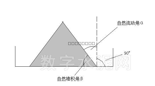 3、細(xì)度越高,粉體流動性變化幅度越大。 5、任何粉體在靜態(tài)沉積條件下,均存在其含氣向上方自然逸析向固態(tài)轉(zhuǎn)化的趨勢,從流態(tài)轉(zhuǎn)為固態(tài)的速率與粉體比重和料壓成正比;達(dá)到飽和固態(tài)的粉體已不可析氣壓縮,每種粉體的自然飽和固態(tài)料壓力(料位高度)不同。 6、當(dāng)空氣濕度大并滲入粉體時,其流動性隨水份含量高而降低;反之,空氣干燥則增加。 7、動態(tài)收縮越快,粉料所受收縮壓越大,氣體擠出效應(yīng)越快,流動性轉(zhuǎn)變?yōu)楣绦栽娇?,尤其?a href="http://m.zhuchengliang11.com.cn/">鋼板倉倉底出口附近,大流量卸放必然引發(fā)的快速收縮度而容易形成拱圈阻塞。距鋼板庫庫底出口最短垂直路徑的中心通道因收縮小,其流動性最高。 8、鋼板庫庫底邊壁存在料重承壓固化效應(yīng),位置越低料壓越高,固化性越大;而且邊壁還存在摩擦阻流效應(yīng),一般在鋼板庫庫底錐及垂直壁夾角的自然堆積角區(qū)易形成飽和固態(tài)料。 9、粉體下落往往以動態(tài)拱垮式自然振顫方式進(jìn)行,每層料拱將上部料壓力統(tǒng)一導(dǎo)向外庫壁支撐,待其下方落空失去支撐平衡而垮落再重新成拱,如此周而復(fù)始,流動性越低其拱垮幅度越大,下落振顫周期與幅度越大。 三、粉體性的量化標(biāo)準(zhǔn)與定義 不難發(fā)現(xiàn),粉體的自然堆積角與其流動性上呈反比,從庫內(nèi)錐口卸放時體現(xiàn)為導(dǎo)流性的等幅變化,因此可定義其自然流動角為自然堆積角的余角: