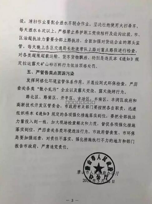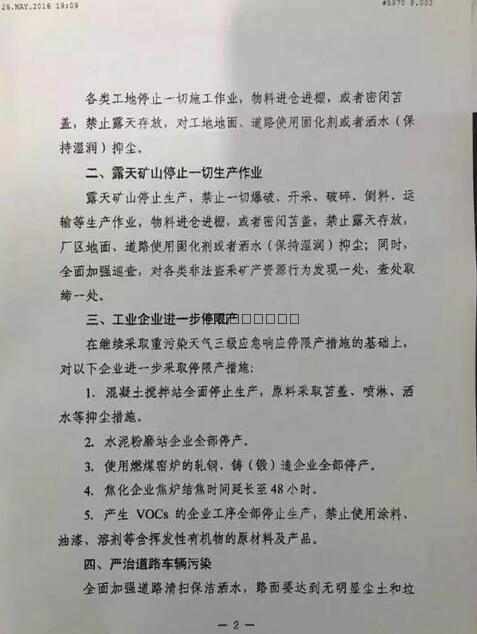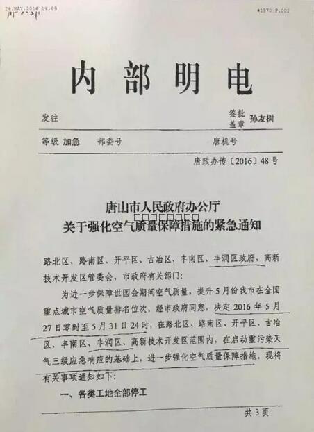 按照市重污染天氣應(yīng)對(duì)指揮部決定,2016年5月27日零時(shí)-5月31日24時(shí),在路北、路南、古冶、開平、豐潤(rùn)、豐南、高新技術(shù)開發(fā)區(qū)范圍內(nèi),在啟動(dòng)重污染天氣三級(jí)應(yīng)急響應(yīng)的基礎(chǔ)上,對(duì)以下工業(yè)企業(yè)進(jìn)一步采取停限產(chǎn)措施: