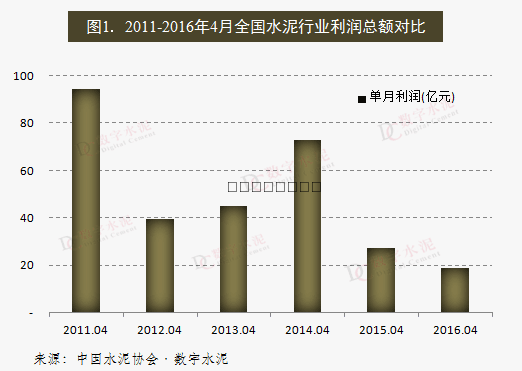 根據(jù)國家統(tǒng)計(jì)局?jǐn)?shù)據(jù)顯示,2016年1-4月,水泥行業(yè)實(shí)現(xiàn)銷售收入2099億元,同比下降7.14%,降幅較前3個(gè)月有所減緩;全行業(yè)虧損1.51億元,上年同期為盈利59.3億元。4月份單月利潤總額為18.9億元,較上月出現(xiàn)大幅增長,但盈利水平較低。預(yù)計(jì)上半年行業(yè)效益將創(chuàng)2011年以來的最低水平。