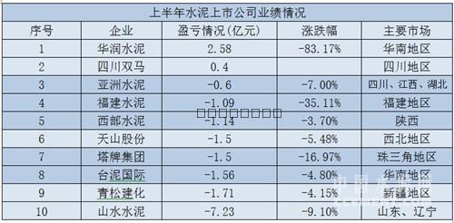水泥上市企業(yè)半年報陸續(xù)公布 虧損成主旋律 |