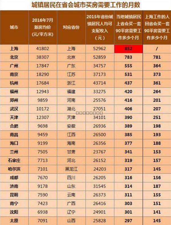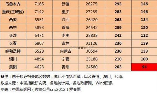 如果拿著2015年的所在省平均收入,那么,你想在所在省的省會(huì)城市買一套房子,貴州人民最輕松,不吃不喝工作203個(gè)月(將近17年)就夠了。