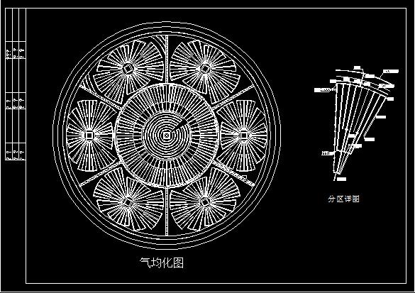 鋼板庫(kù)出料原理及說(shuō)明 本大型鋼板庫(kù)在庫(kù)底中心建有一錐形封閉減壓錐,在減壓錐底部配置物料活化氣力裝置(汽化管),庫(kù)底環(huán)形卸料區(qū)與水平面有17°的斜度,根據(jù)庫(kù)體直徑大小分12-40個(gè)充氣區(qū)。卸料充氣區(qū)分外環(huán)充氣區(qū)和內(nèi)環(huán)充氣區(qū)(空氣壓力0.4MPa),并在內(nèi)外區(qū)兩相鄰導(dǎo)料槽間設(shè)置導(dǎo)料錐,構(gòu)成w型卸料。當(dāng)輪流向某一充氣區(qū)送入壓縮空氣時(shí),該區(qū)物料呈流態(tài)化,并通過(guò)各區(qū)下料口使庫(kù)內(nèi)的物料呈漩渦狀塌陷,在物料的下移過(guò)程中產(chǎn)生重力混合均化。進(jìn)入物料輸送經(jīng)充氣成為活化物料,具有較好的流動(dòng)性,經(jīng)發(fā)送器的集料、射流作用輸送涌管內(nèi),完成鋼板庫(kù)的出料。 庫(kù)體原理圖: